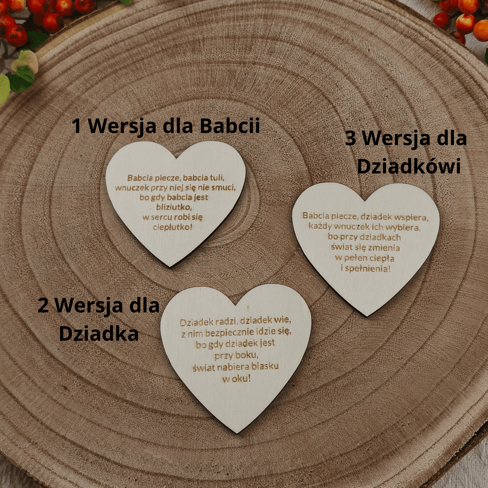 Przy składaniu zamówienia prosimy o wybór wersji wierszyka oraz podanie ilości i imion jakie mają być umieszczone na serduszkach.