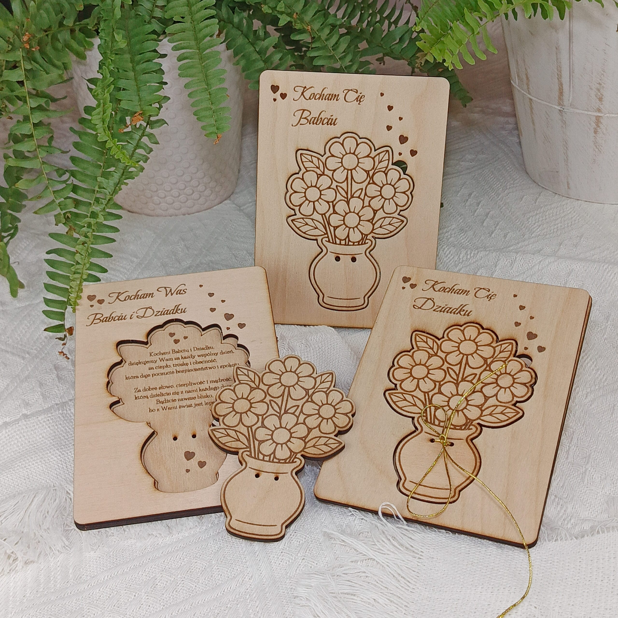 Drewniana kartka dla Babci i Dziadka ze sklejki to wyjątkowa alternatywa dla tradycyjnych papierowych życzeń. Jest nie tylko trwała i elegancka, ale także pełna ciepła. Dzięki naturalnej fakturze drewna kartka zyskuje ponadczasowy charakter. Dodatkowo precyzyjny grawer sprawia, że każdy detal prezentuje się wyraźnie i estetycznie.