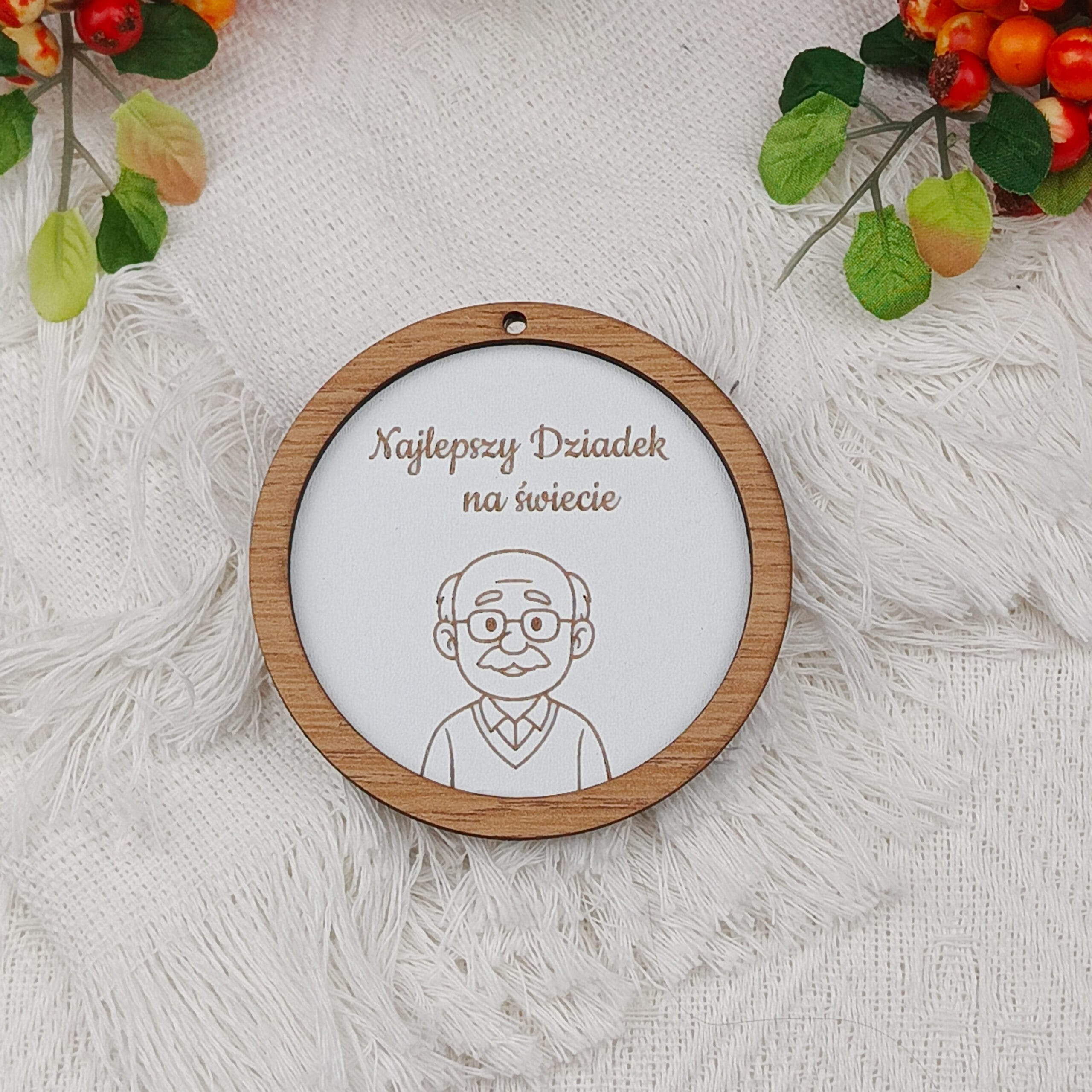Medal wykonany ze sklejki to sympatyczny sposób, by powiedzieć Babci lub Dziadkowi, jak bardzo są ważni. Delikatna grafika i napis „Najlepsza Babcia na świecie” lub „Najlepszy Dziadek na świecie” nadają mu ciepły, rodzinny charakter. To drobiazg, który wywołuje uśmiech i zostaje z obdarowaną osobą na długo.