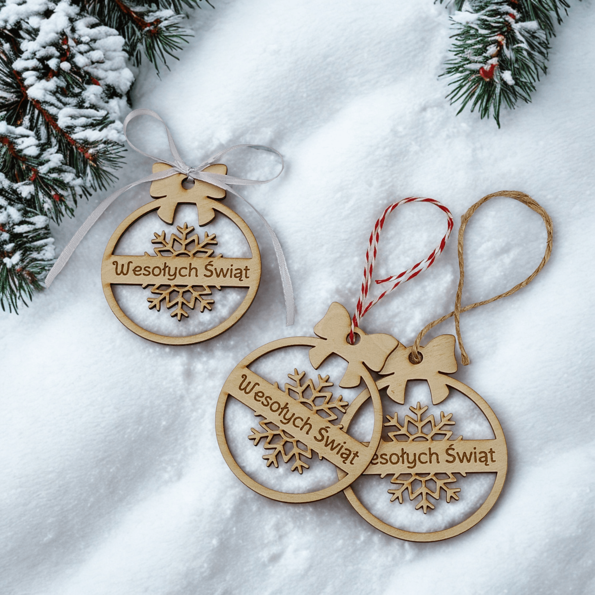 Marzy Ci się choinka ubrana w naturalne ozdoby, które podkreślą jej wyjątkowy charakter? Nasze bombki z grawerem „Wesołych Świąt” to idealne rozwiązanie dla osób, które cenią prostotę, elegancję i bliskość natury. Drewniane dekoracje wniosą do Twojego wnętrza ciepło i autentyczność, tworząc atmosferę prawdziwych, rodzinnych świąt. Te zawieszki świetnie sprawdzą się zarówno w tradycyjnych, jak i nowoczesnych aranżacjach świątecznych. Są lekkie, trwałe i zaprojektowane tak, aby mogły zdobić Twoją choinkę przez wiele sezonów.